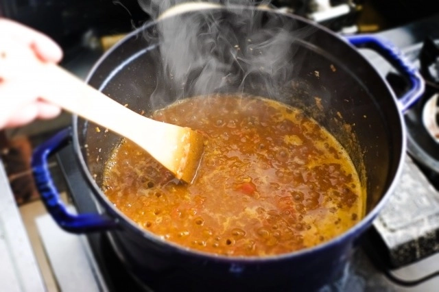 カレーで起きる食中毒の多くは、ウェルシュ菌といわれる菌が原因。ウェルシュ菌はカレーやシチューなどの酸素が少ない環境で増殖しやすく、硬い殻に覆われた芽胞という状態であれば、100度の熱で加熱しても死滅しないのが特徴です。