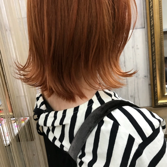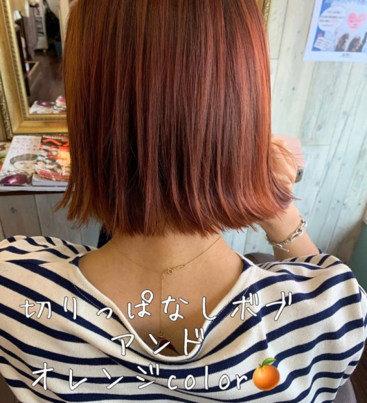 ビビットカラーとは相性の悪いイエベ春タイプですが、オレンジとは相性が良くなじみやすいですよ。画像のように切りっぱなしのボブと組み合わせると、キュートかつおしゃれなベストバランスに。