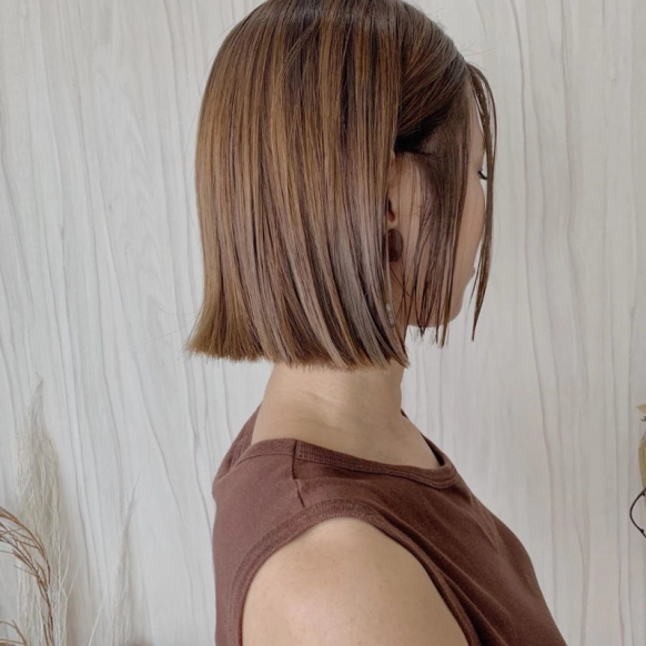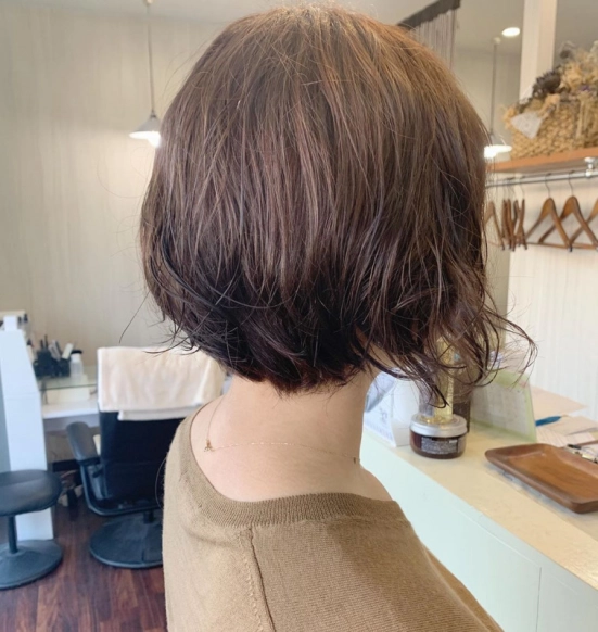 少しアッシュなブラウンで、ボブヘアに軽さとかわいらしさが出ますね。明るさもちょうどいいトーンで大人っぽさをキープ。秋服にもなじみが良さそうです♡