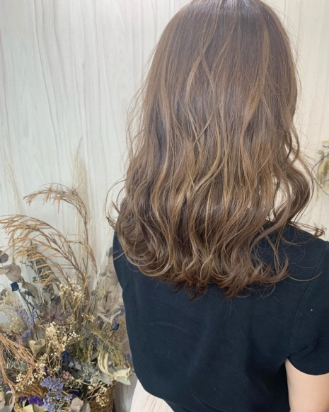 秋の草木を思わせるアースカラーも、ハイライトを入れることで動きとツヤが出て、透明感ある仕上がりに。髪を巻いてヘアアレンジをすると、ハイライトの筋感がアクセントになってかわいさ倍増ですね。