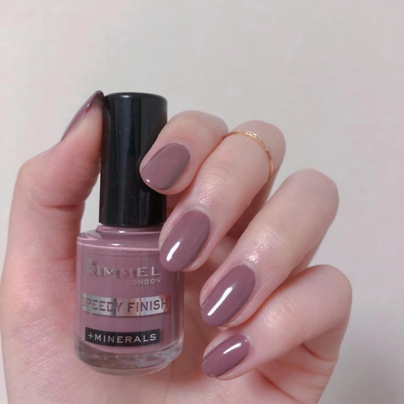 さらに高発色なことも人気のポイント。セルフネイルだと何度も塗り重ねるイメージがあるかもしれませんが、リンメルのスピーディ フィニッシュなら、ひと塗りでもしっかりと色が出てくれるので、簡単にセルフネイルを楽しめます。