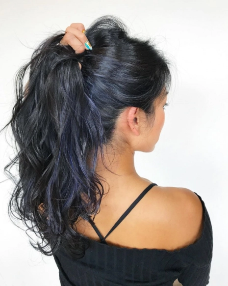 ・ウェービーなロングにネイビーブルーのハイライトできれい髪