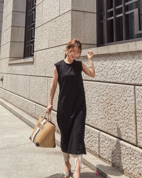 シンプルなワンピースは、存在感のあるボディが特徴の骨格ストレートさんの得意アイテムです。ストンとしたIラインデザインのワンピースは、骨格ストレートさんのボディの厚みをさりげなくカバー。フェミニンな印象も与えてくれます。上品なひざ下丈で、スリットが入っているため動きやすいのもポイントです。夏服ならノースリーブのまま、冬服ならカーディガンやジャケットを合わせるなどが良さそうですね。