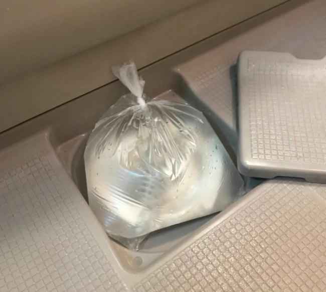 1.排水口の床栓をしっかりしましょう。初めに二重にしたビニール袋の中に排水口の中のゴミ受けを入れて口を閉じ、排水口に戻します。次に二重にしたビニール袋に水を入れて排水口の上に置き蓋をします。