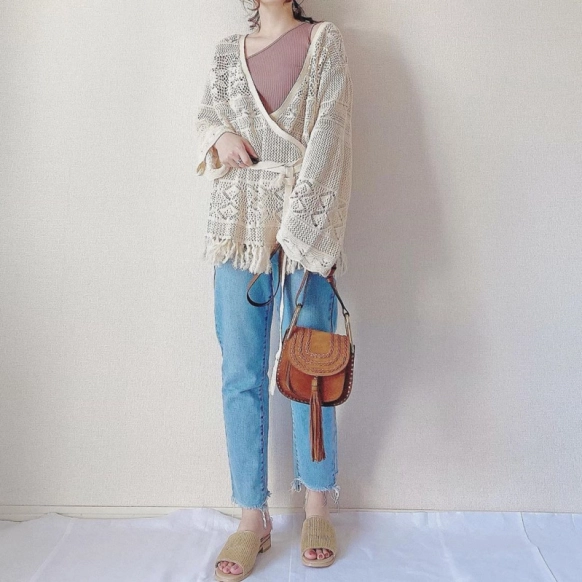 意外と着こなしの幅の広いカシュクールカーディガン。SNSからおすすめコーデをピックアップしたので、参考にしてくださいね。