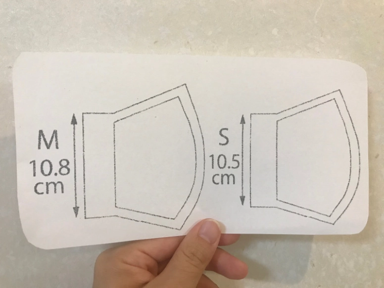 マスクの型紙は、大人用と子供用の2種類がほとんどです。使い捨てマスクの2~3歳用のマスクと比較し、子供用の型紙は2~3歳の子供には少し大きいかもしれません。その場合は、型紙を少し縮小して使うといいでしょう。