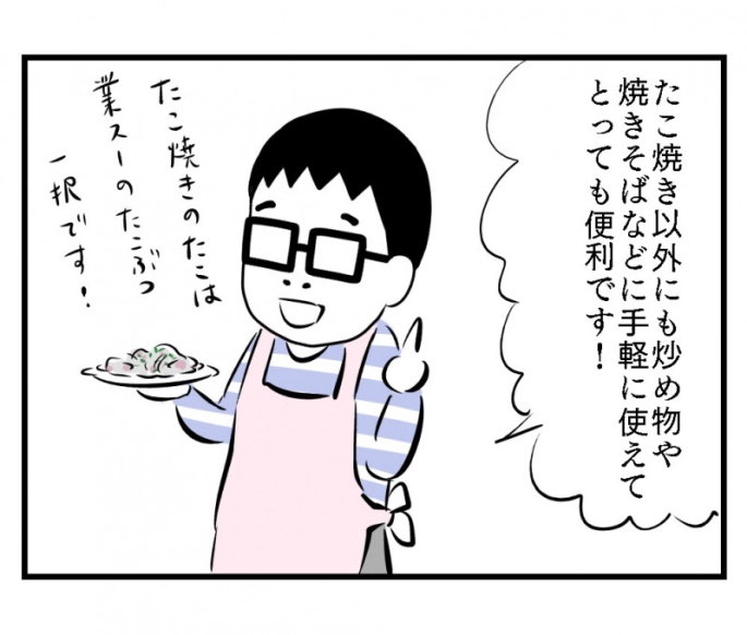 たこぶつは、他にも焼きそばや炒め物などちょっとしたものにサッと入れられてたこ焼き以外の使い道も無限大です。