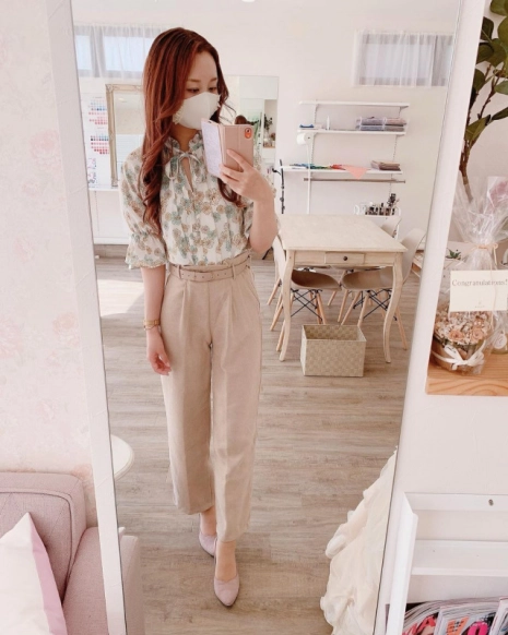 センタープレスのパンツと合わせれば、きちんと感満載のおしゃれコーデが完成!パンツと合わせたときは、足元はヒールにして上品さをアップさせてみてくださいね。同じ柄のスカートも登場しているので、セットアップ風に着こなすのも素敵です♡