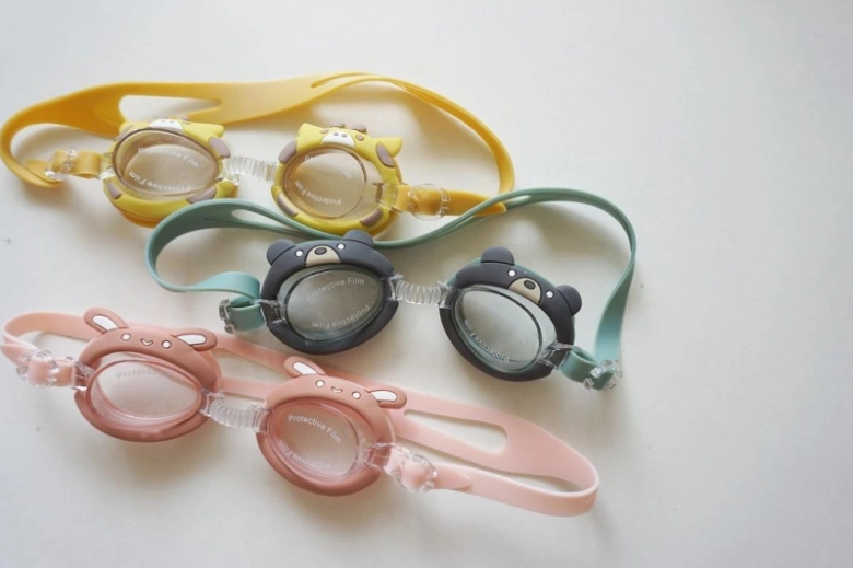 きりん、くま、うさぎ、のキャラクターがデザインされた「KIDSゴーグル」330円(税込)!
