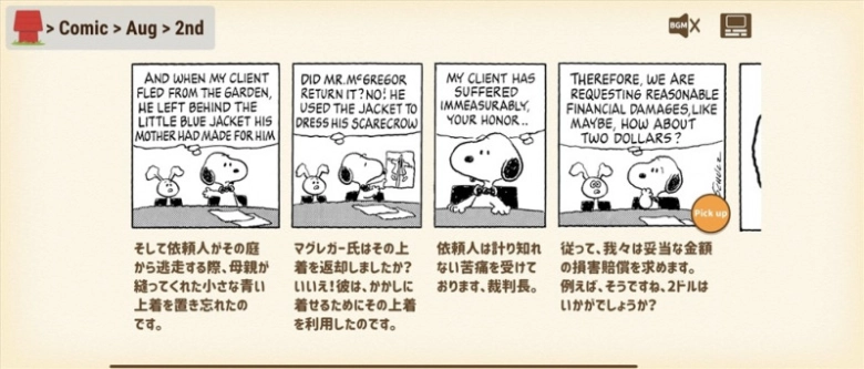 スヌーピーをはじめPEANUTSの仲間が登場するコミックが365日読める有料版にトライしてみました。