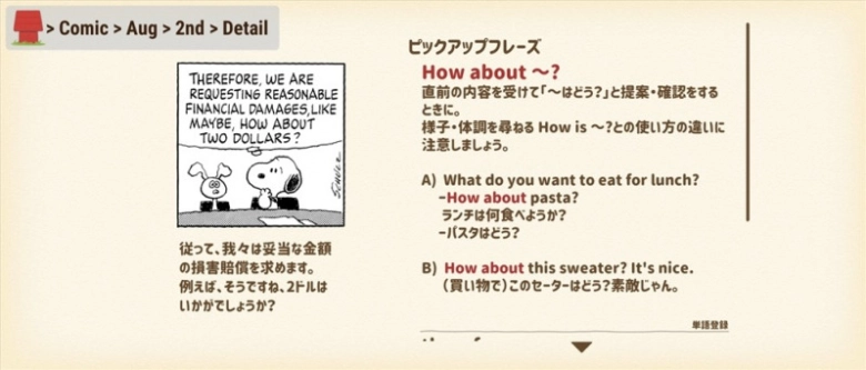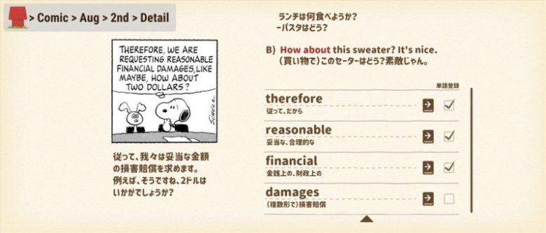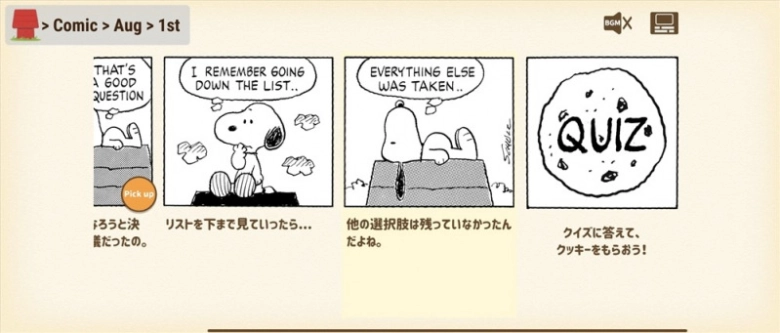 コミックを読み進めると、最後に彼らの会話の内容を問う簡単なクイズが登場します。