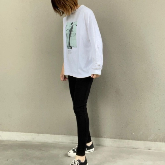 ・大胆なバックプリントを主役にしたロンティーコーデ