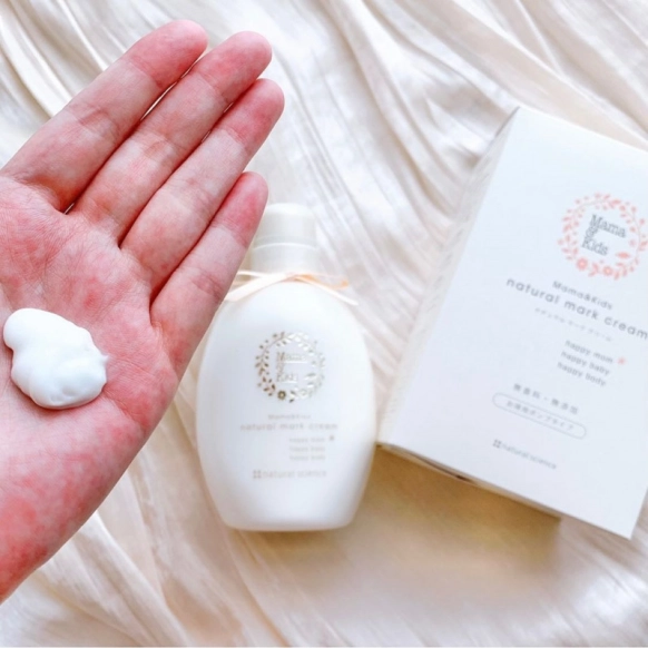 ナチュラルサイエンス『Mama&Kids(ママ&キッズ)』の「ナチュラルマーククリーム」は、美容液と美容オイルからできたクリームで、高保湿で伸びの良いテクスチャーが特徴。水分と油分を同時にチャージできるので、うるおいが長続きします。