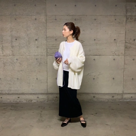 @hirorin.29さんのようにボリュームのあるニットカーディガンは、タイトなボトムスやワンピースと相性抜群!女性らしいゆる感のあるシルエットがかわいらしいですね。