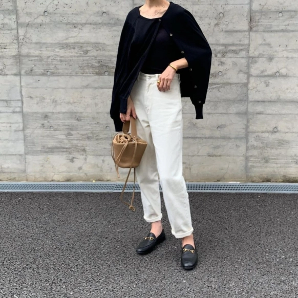 また、バッグや靴にも黒色を取り入れると、さらに引き締まってまとまりのあるコーデになるので試してみて。
