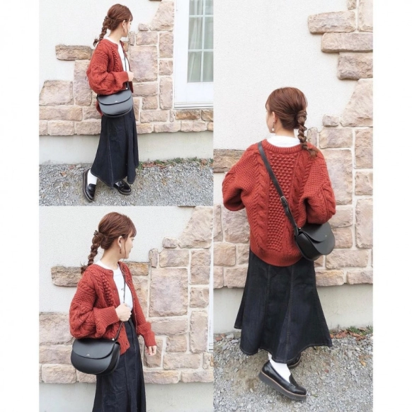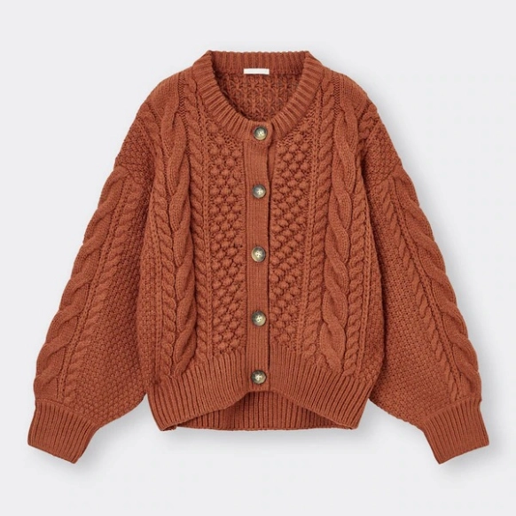 暖色系のニットカーディガンは秋冬の洋服の色味と相性が良く、派手すぎないのにコーデをおしゃれに格上げしてくれるアイテム。『GU(ジーユー)』の「ケーブルコクーンカーディガン」のダークオレンジは、気分の上がるあたたかなカラーで、秋冬にぴったり!