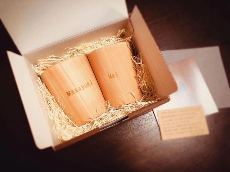 @momo25taneさんのようなヒノキのコップであれば、軽くて割れにくいため、長くペアカップとして使えそうです。