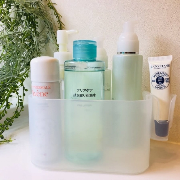 深型タイプもあるので、化粧水やハンドクリームなどを立てて収納することも。お家に数種類あるスキンケア用品はできるだけすっきり収納したい!そんな思いもダイソーのボックスが解決してくれますよ。