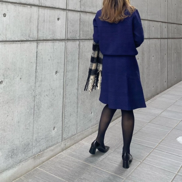 ■膝丈は黒タイツで子どもっぽさをカバー!