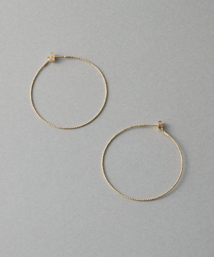 根強いファンも多いジュエリーブランド『ete(エテ)』。大きめながら、繊細なシルエットを描く華奢なラインが美しいフープピアスがおすすめ。耳元に馴染みやすく上品なスタイリングを作ってくれます。K10ゴールドの繊細さと、シャンパンゴールドの華やかな色味を楽しめるジュエリーです。