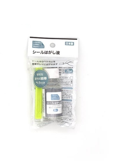 ダイソーのシールはがし液も、大抵のシールに対応しています。こちらはスプレータイプとは違い、瓶に入った液を塗りつけるタイプ。液入りの瓶とヘラ、塗る用の綿棒がセットの商品です。