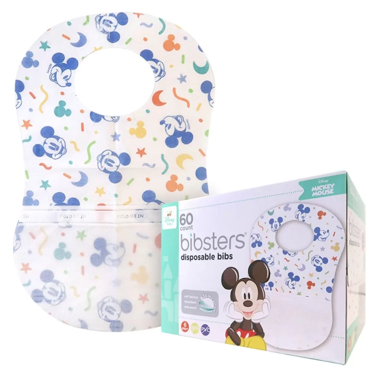 ディズニーの柄がかわいい使い捨てエプロン。離乳食を嫌がっても、これなら楽しんで食べてくれそうですね。お出かけ用の荷物に何枚か入れておくと、急に必要になったときにも便利。