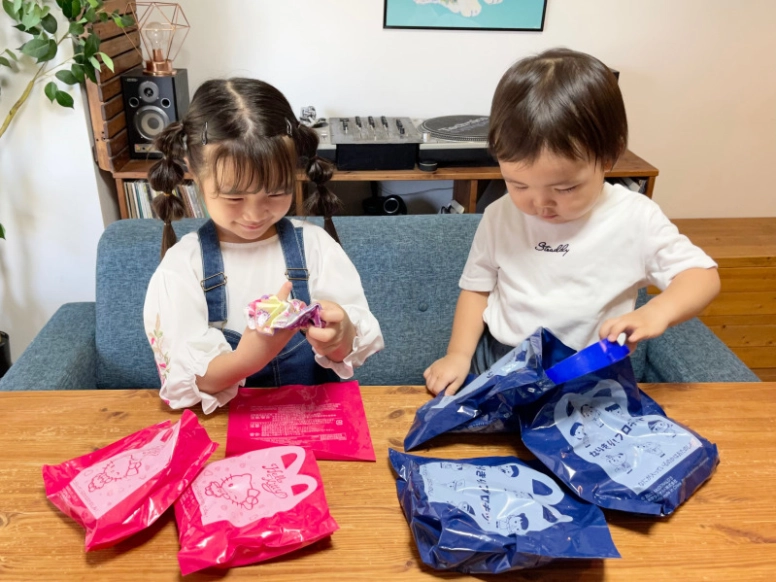 「娘は、キティちゃんの応援ごっこは音や光も楽しめるので汗だくになって遊んでいました。 今回もなりきり度が高くママもビックリ! 下の子も、やりたい!貼りたい!付けたい!と積極的に楽しんでいて、予想以上に姉弟で盛り上がっていました」