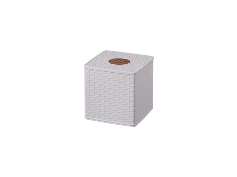 北欧インテリアや韓国ファブリックとも相性の良い編み目調デザインの「編み目調ティッシュボックス」は、ティッシュボックスをそのまま入れられます。本体がポリプロピレンでできているため、水濡れに強く、ケースの掃除もしやすいのが人気のポイント。洗面所やトイレなど、水気の多い場所に置ける商品です。