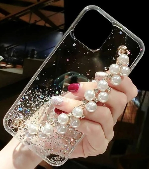 ・ラインストーンがまるでアクセサリー!ブレスレット付き透明電話ケース