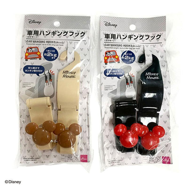 可愛くて実用的な車内グッズは100均にも。「DAISO(ダイソー)」の車用のハンギングフックは、車のヘッドレストに取りつけて、買い物袋やカバンなどを引っ掛けるのに便利なアイテムです。ミッキーのデザインで、大人っぽいベージュカラーと合わせやすいブラックの2種類があります。
