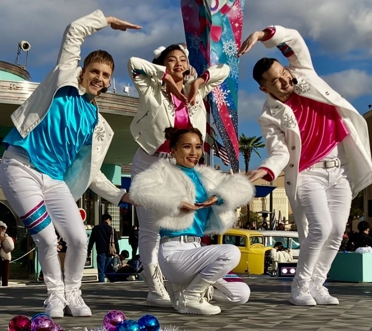 1930〜1940年代の華やかなハリウッドの景色が再現されたハリウッド・エリアでは、冬限定のステージ「パワー・オブ・ポップ~クリスマス・ホリデー・ハートビート~」を開催。クリスマスらしい曲からダンスナンバーまで、様々な曲で歌&ダンスを披露してくれます♪驚いたのは、「ロマンスの神様」、「恋人がサンタクロース」といった懐かしの冬ソングも入っていたこと!懐メロ大好きな私は、最高にテンションが上がりました(笑)。