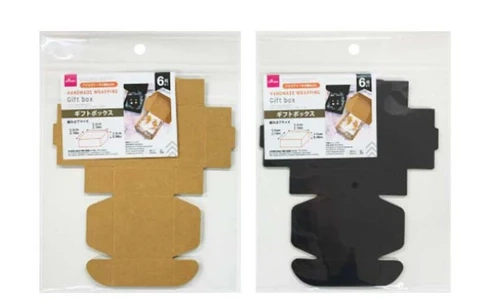 折り目に沿って簡単に組み立てられる紙製のボックス。デザインがシンプルなのでシールでデコるなど自分だけのオリジナルラッピングができます。使用する際は、直にお菓子を入れず、ラッピングしたお菓子を入れてくださいね。
