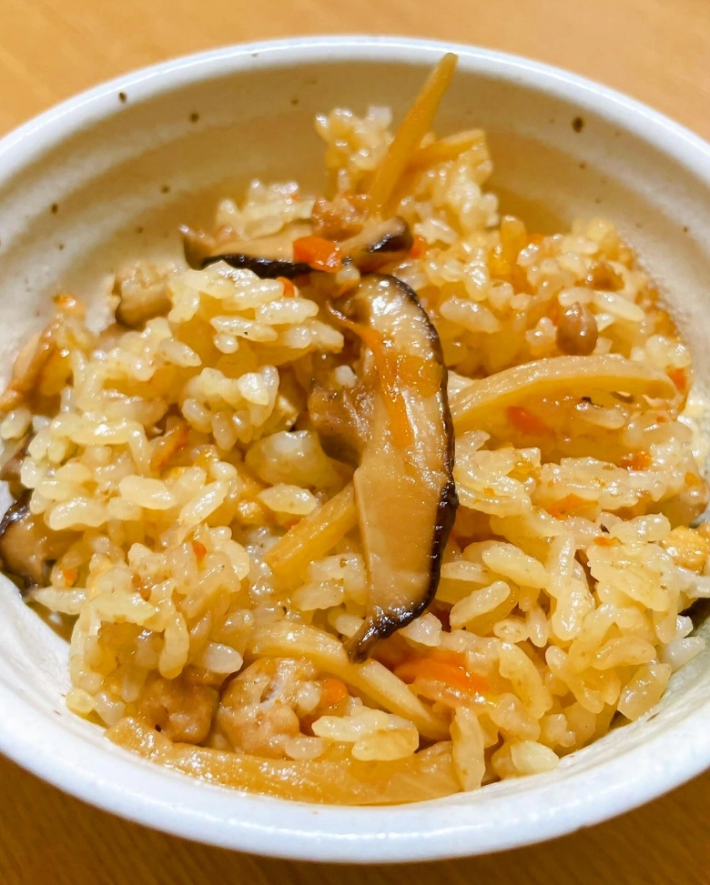 もちもちのおこわは、大人も子供も大好き!脂が乗った鯖の塩焼きをほぐしておこわに乗せると、椎茸や肉の旨みと鯖の脂が調和して、味わい深い一品に仕上がります。