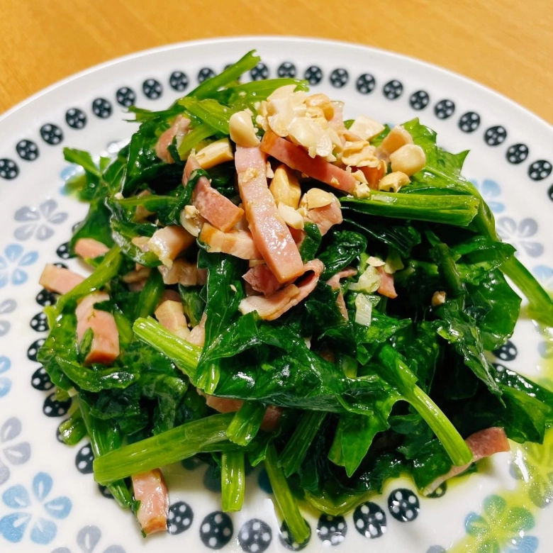 ほうれん草をたっぷり一束使用するので、クリームシチューだけでは不足しやすい緑黄色野菜をしっかり補えます。バター醤油の香りもGOOD!