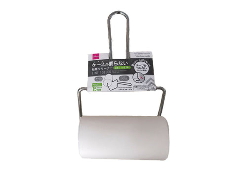 「ケースつきは便利だけど、取り出すのがおっくう…」という方におすすめなのがダイソーの「ケースが要らない粘着クリーナー」。壁にかけるときも、床置きするときも、テープ面がつかないフレーム構造なので、手に取るだけで掃除ができます。詰め替えは左右の柄を開き、ホルダーからテープを抜いて行います。