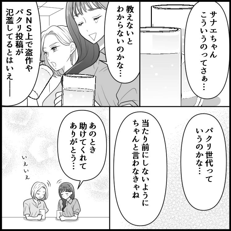 「みんながやってるから」と開き直る後輩に、ちゃんと指摘した二人。言いづらいことであっても、後々に大きなトラブルに発展しかねないと考えれば、早いうちに指摘できたのは良かったのではないでしょうか。嫌われ役は心が折れるかもしれませんが、ダメなものはダメ!トラブル回避ができたと思って頑張ってほしいですね。
