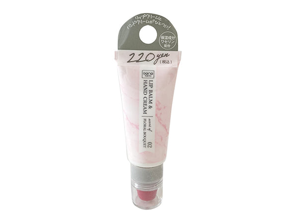 02のハンドクリームはフローラルブーケの香り、リップの色は青みのあるピンク系です。