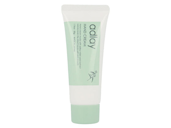 保湿成分のハトムギ種子エキスを配合したハンドクリームです。軽いテクスチャーの緑色のクリームは塗ると肌になじみ、カサカサした手や指にもっちりしっとりとしたうるおいを与えます。