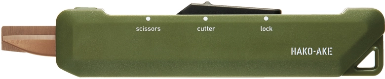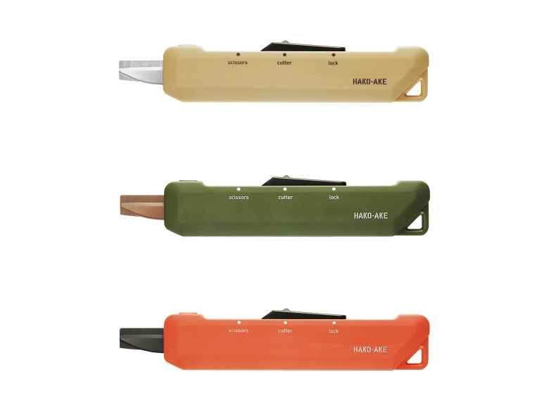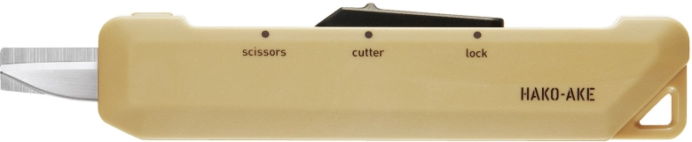 カッターのようなハサミのような「ハコアケ」。段ボールを開けるための使いやすい機能がデザインに隠されていました。箱の天面や側面をカットしたい時は、真ん中の”cutter”モードに合わせます。すると、約3mmのカッターが登場。先端が箱に添うようなガイド形状になっているので、力をかけることなくスムーズにカットできますよ。刃が出すぎないので、箱の中身の商品を傷つける心配もありません!