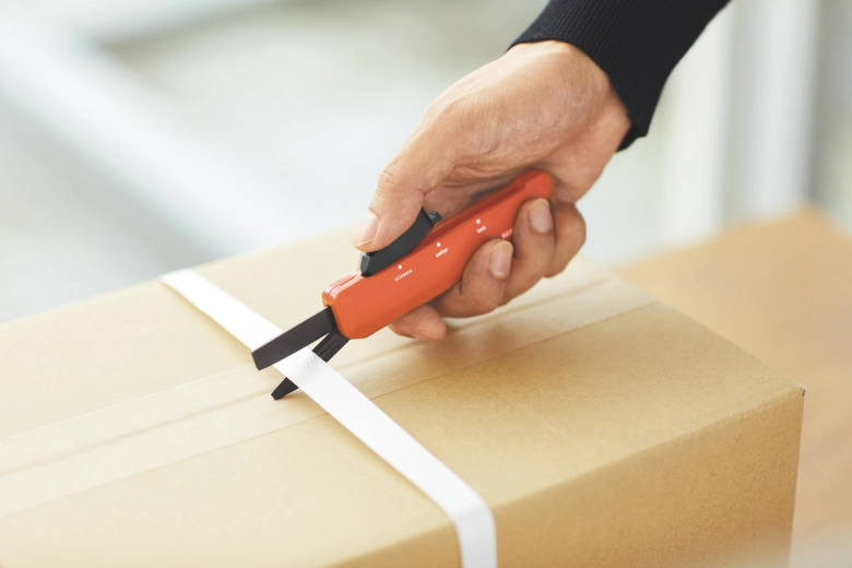 段ボールの底抜けや強化をするためのPPバンドで荷締めされている時には、ハサミが必要ですよね!そんな時には、”scissors”モードまでスライドさせれば刃が開いてハサミとして使えるんです。もちろん衣類のタグを切ったりや封筒の開封など、カッターからハサミにわざわざ持ち替えることなくこれ1本で解決!