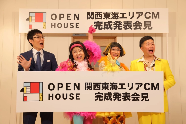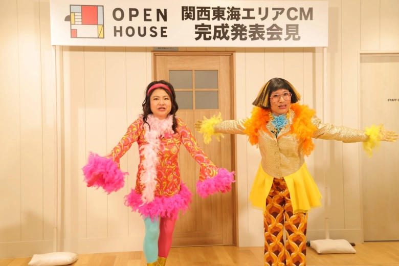 不動産会社オープンハウスの新CM発表会見だったのですが、そこに現れたのは吉本新喜劇のスッチーさんと島田珠代さん。写真にあるように、ド派手な衣装での登場。関西東海エリアのCMということもあり、新喜劇の人気者スッチーさんと島田珠代さんに白羽の矢が立ったそうです。会見でもCMでも目が離せなかったのが、スッチーさんと珠代さんの動きと顔芸!インパクトありすぎます。
