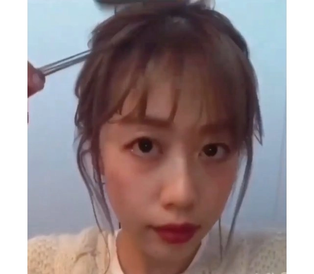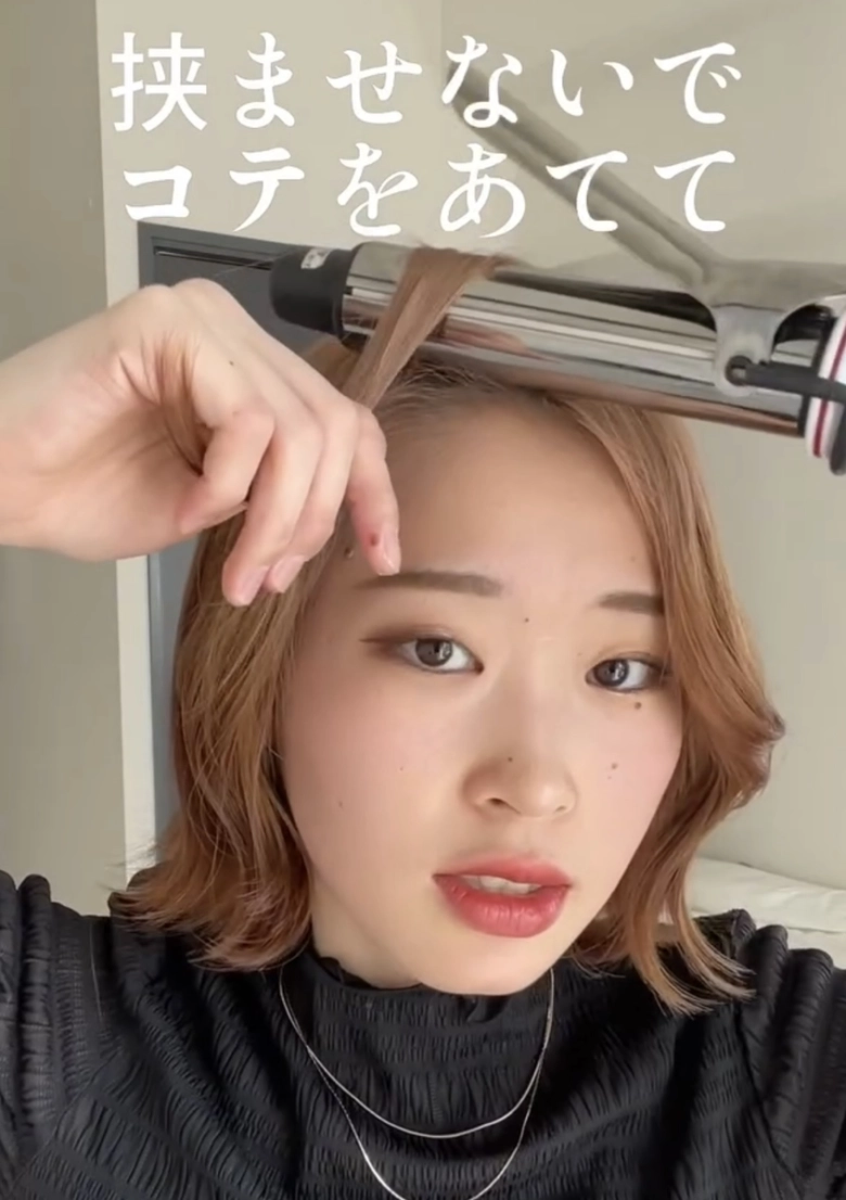 - 前髪の根元にコテを当て、ふわっとさせて完成