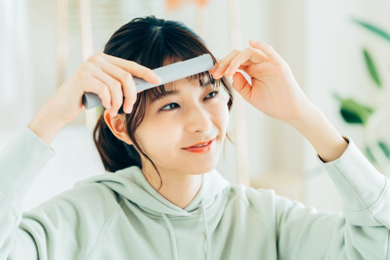 ここからは、ドライヤーやストレートアイロンを使った、前髪のくせ毛の直し方を紹介します。