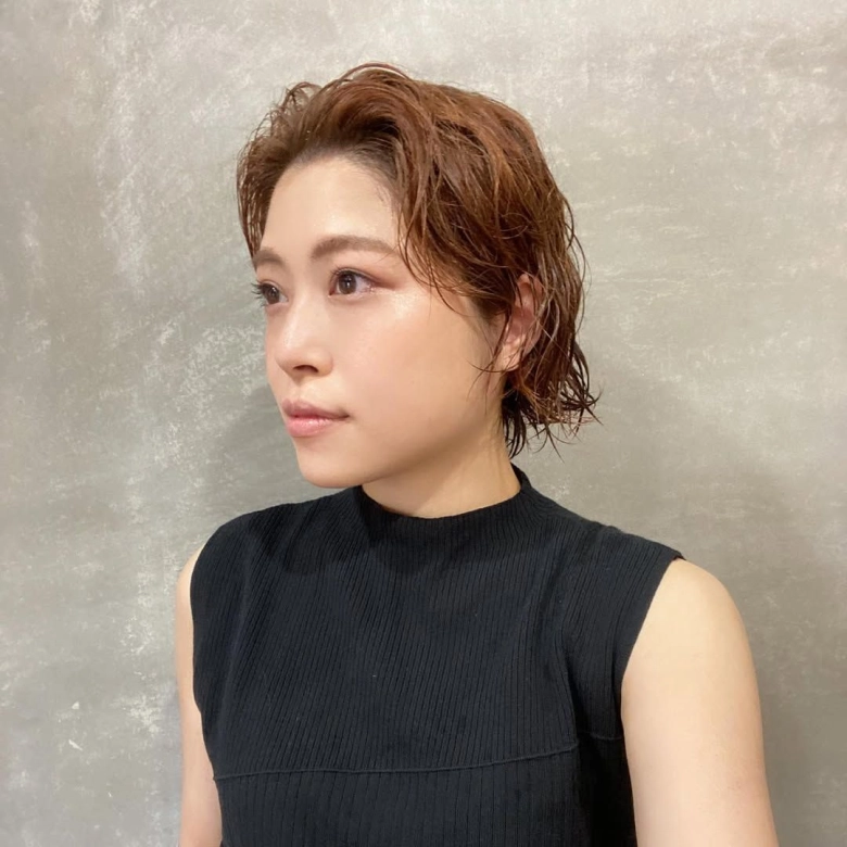 ムースやバームなど、お好きなスタイリング剤をなじませましょう。かきあげながら揉み込むと、ふんわりとした立体感を作れますよ。くせ毛の動きを活かした、大人のかきあげ前髪の完成です。
