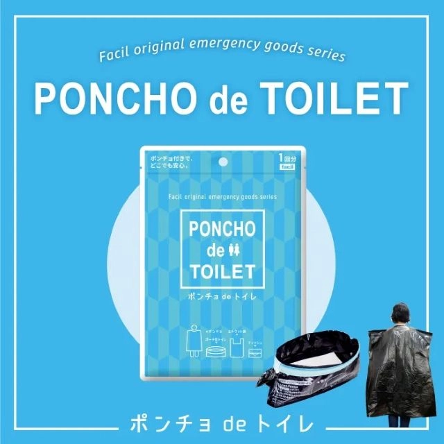 ・目隠しポンチョと自立型携帯トイレつき『ファシル』「ポンチョdeトイレ」