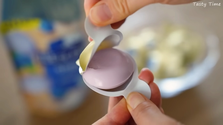 商品名にあるように、シェル(貝殻)のような形の丸いパッケージの中にコロンとチーズが入っています。クリーミーでチーズケーキのような味わいが特徴で、クラッカーに挟んで食べるのがTasty Timeさんのおすすめだそう。夏休みの子どものおやつにも、出しやすくていいですね。