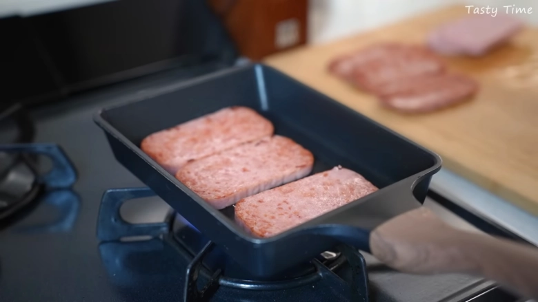 スパムよりも塩分が控えめで、やさしい味わいが特徴のランチョンミートです。