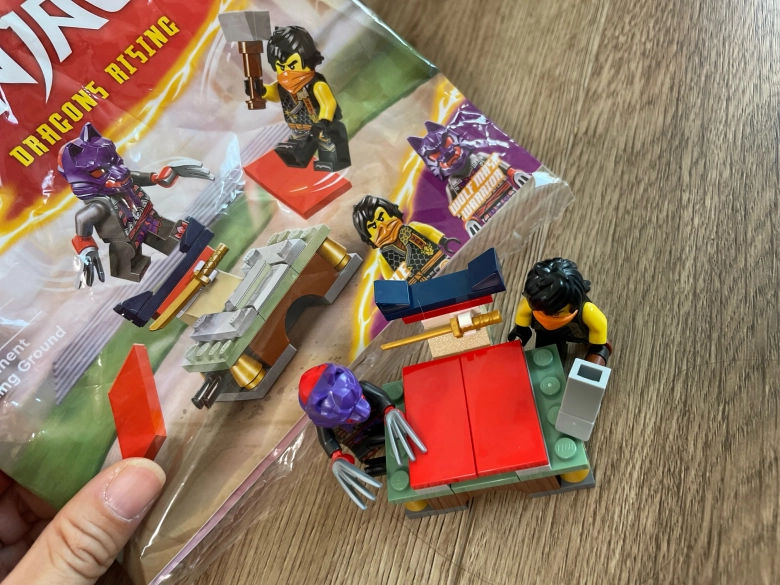 もらったレゴは帰ってからのお楽しみに♪兄弟で同じ種類を選んだので、2人で仲良く作って遊びました。お子さまセットのおもちゃにしては、ずっと遊べるレゴなのでママとしてはうれしい♪