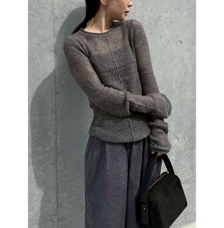 『select MOCA(セレクトモカ)』の「センターラインシアーニット」は、ほのかな透け具合と体のラインにほどよく沿うサイズ感が魅力。シルエットやセンターラインによって着やせ効果も期待できます。