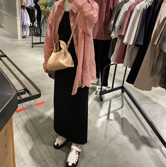 ブラジャーのひもが気になるシースルーシャツとキャミワンピ合わせは、@chel.5_____さんのようにTシャツをインすれば解決!少し肌寒い秋の朝晩にも対応でき、暑いときは二の腕を気にせずシャツを脱げる優秀コーデです。ピンクなどのかわいらしい色のアイテムは、年齢を重ねるにつれて敬遠しがちになってくるもの。しかし、くすみカラーを選べば、40代の大人の魅力をぐんと引き上げてくれますよ。